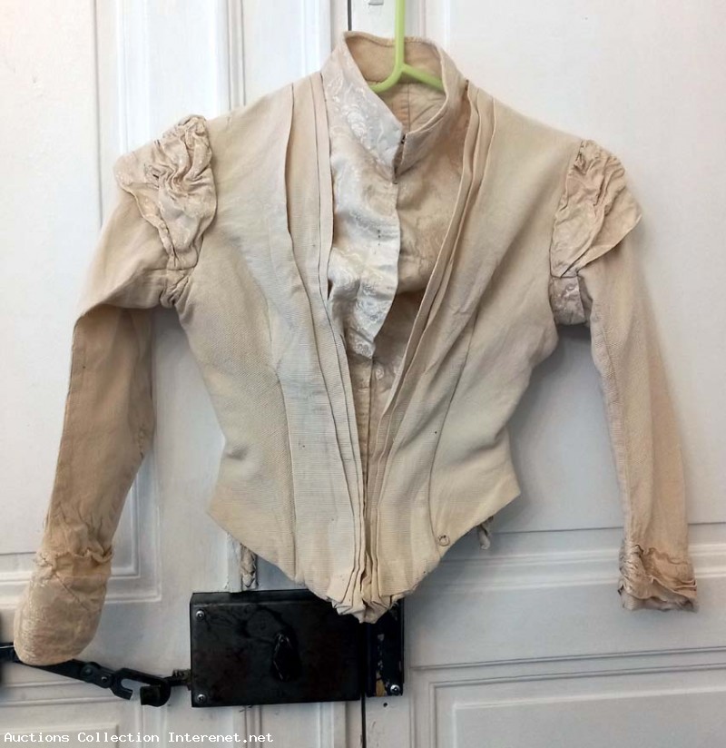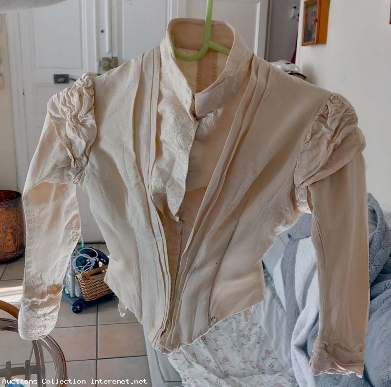 Ancien et Authentique corsage/chemisier, femme Victorien. En fils de soies de couleur champagne. Entièrement cousu à la main.Boutonnage par le devants par des agrafes. Corseté,par des baleines devant et dos.