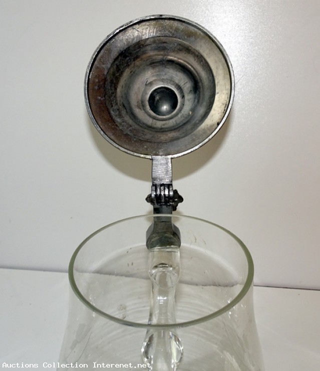 Beau pichet cristal cisele couvercle travaille en étain parfait