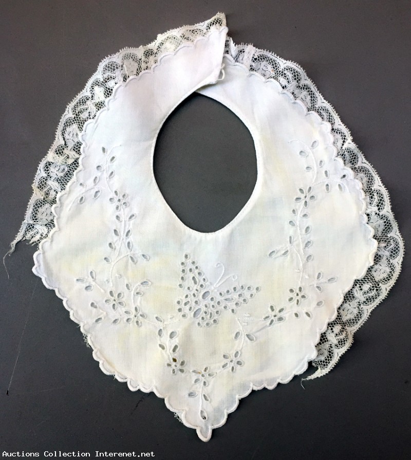 Bavoir de bébé ancien, brodé 1er âge