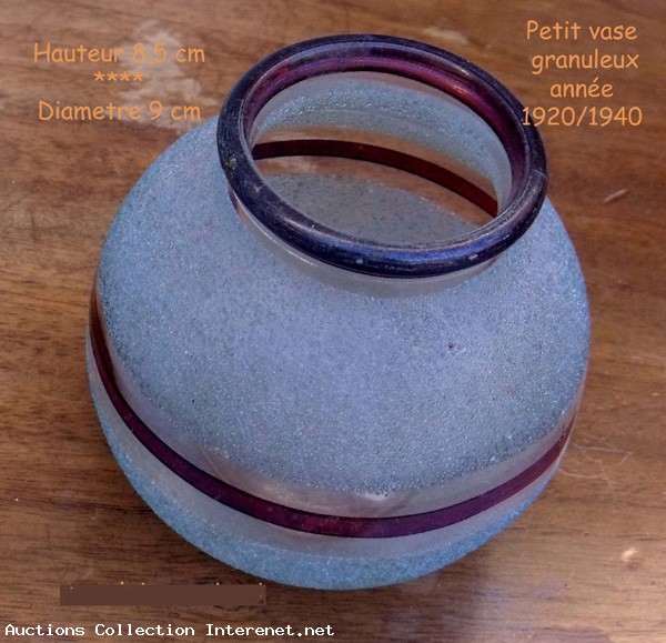 Ancien Petit vase granuleux. en verre de couleur bleu et violet.