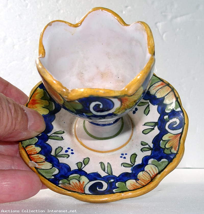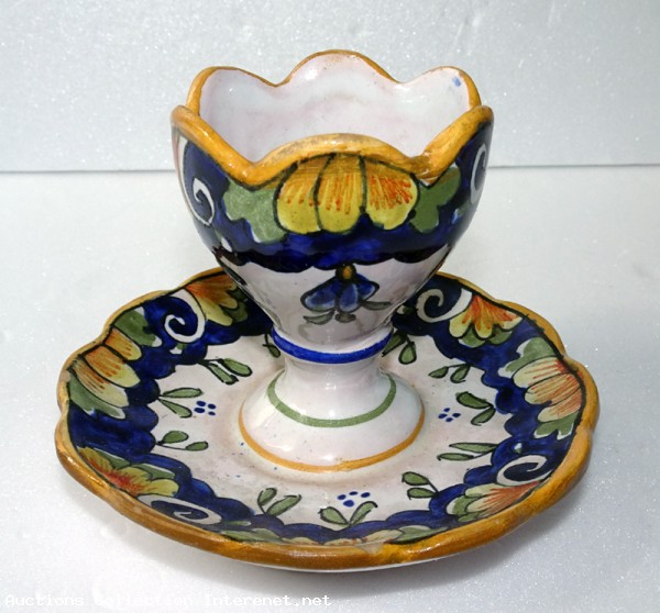 Beau et ancien coquetier décor Vieux ROUEN, signé, en