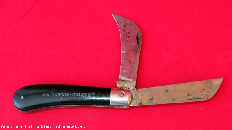 Ancien Couteau double serpette gravé SAFICO NOGENT