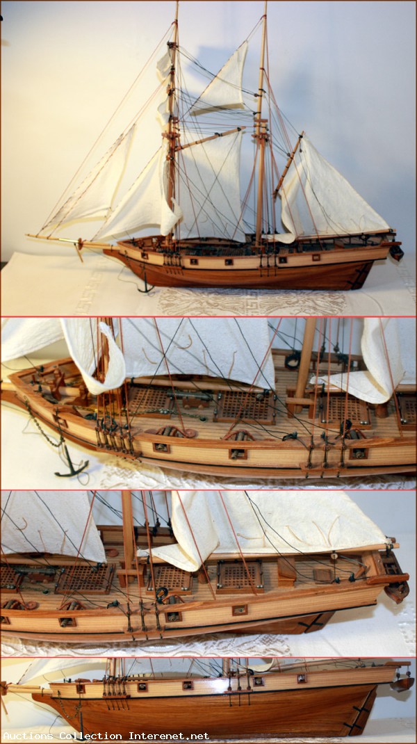 Splendide bateau - voilier tout en bois, entièrement fabriqué à la main, cette maquette montre la précision des finitions, détails et qualité qui sont au rendez vous, voiles en toile bien cousues, belles dimensions : 70 cm de long x 13 largeur du pont x 53 cm haut. manque un ou deux petits canons a acheter en magasin spécialisé. livraison remise en main propre région 83.