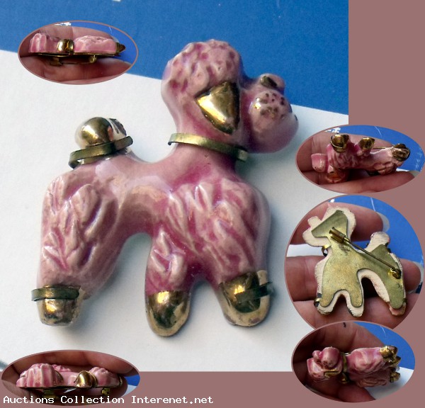 Caniche, Broche céramique/Laiton. Des Années 40/50.