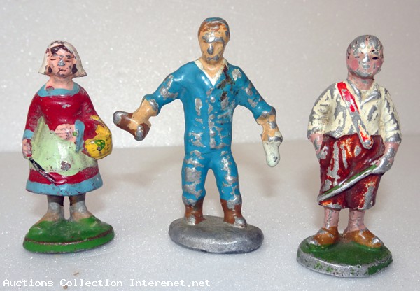 petit lot quiralu 1personnage et 2 enfants gardiens d'oies ou de chèvres - ils on joués. des années 1950/60.