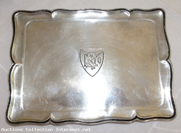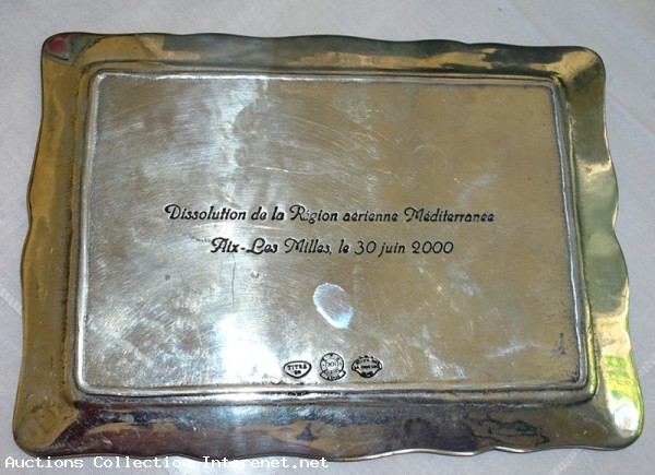 Vide poches En étain massif, argenté, 3 estampilles.Inscription : Dissolution de la Région aérienne Méditerranée Aix les Miles le 30 juin 2000 - Dimensions - 19 cm x 14 cm - poids 670 gr -