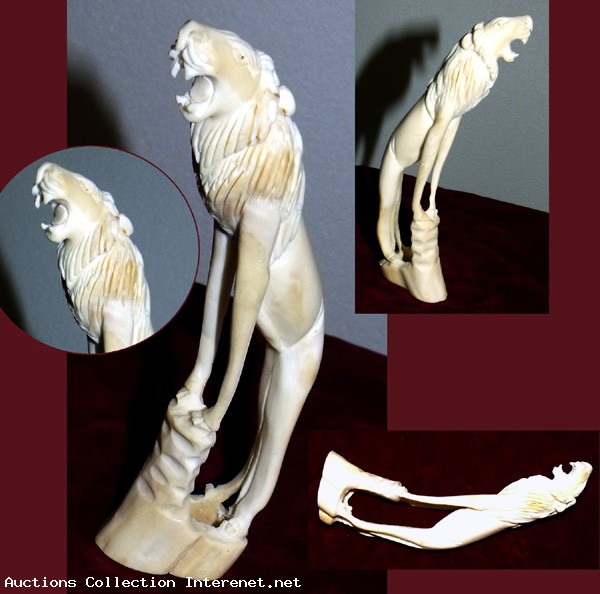 "Lion" Très belle Sculpture animal en défense de phacochère.