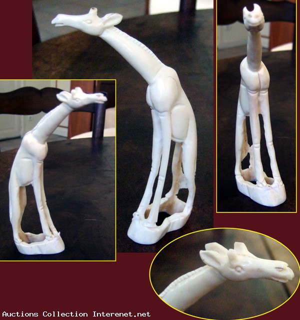 Magnifique "Girafe" Très belle Sculpture animal en défense de phacochère. Art Africain. Côte d'Ivoire?.