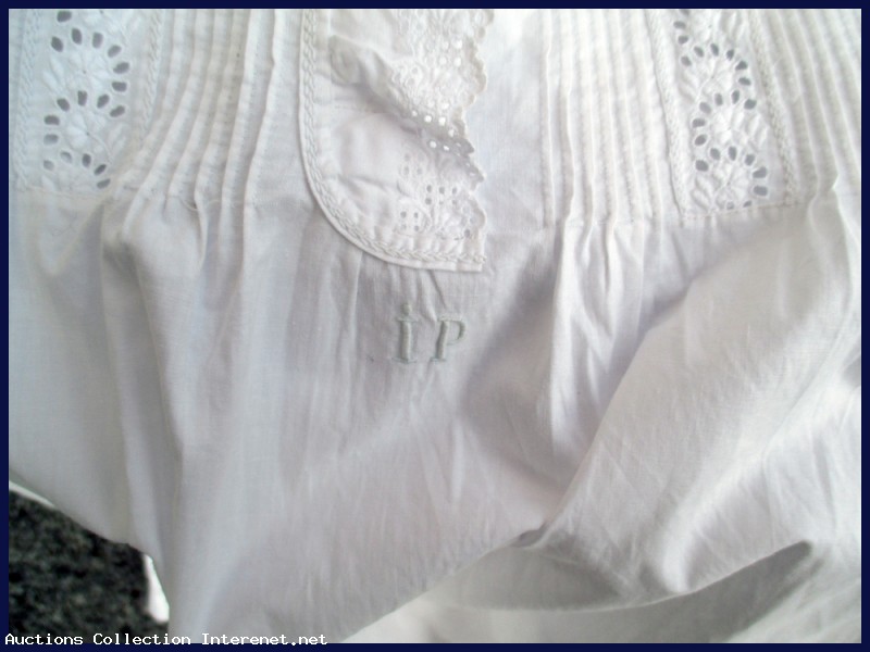 Monogramme " IP " Elle a son plastron et ses poignets entièrement brodés + dentelle