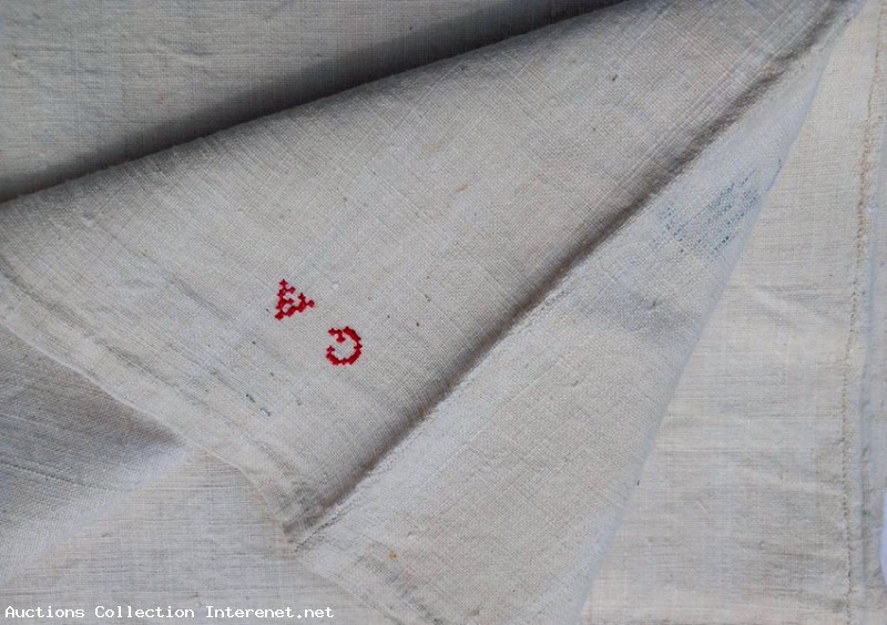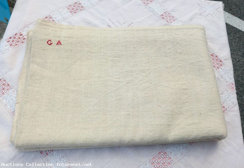 Ancien drap en toile de Chanvre. Très épais et lourd. Époque 18eme. Monogramme " GA " Dimensions : 262 cm X 210 cm. Très bon état. Poids : 3 kg. Référence : 3-23/139.