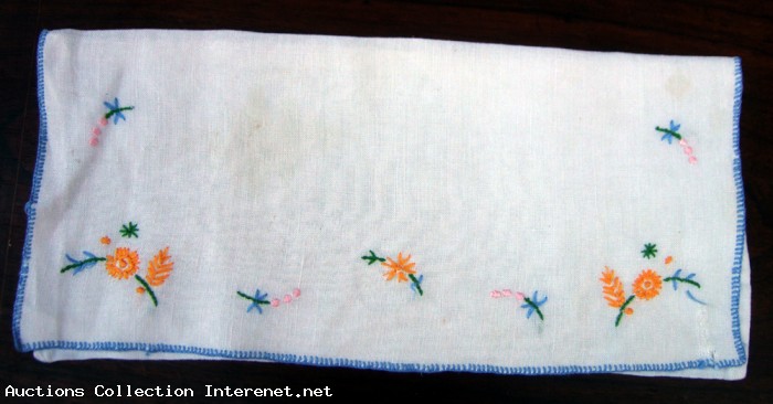 Ancien porte serviette. Brodé main. En lin.Occasion, Petite reprise sur un dés côté. en bon état.Dimension : 26 cm x 12 cm. Référence : N180809.Lavé, repassé, reconditionné, livré sous blister.