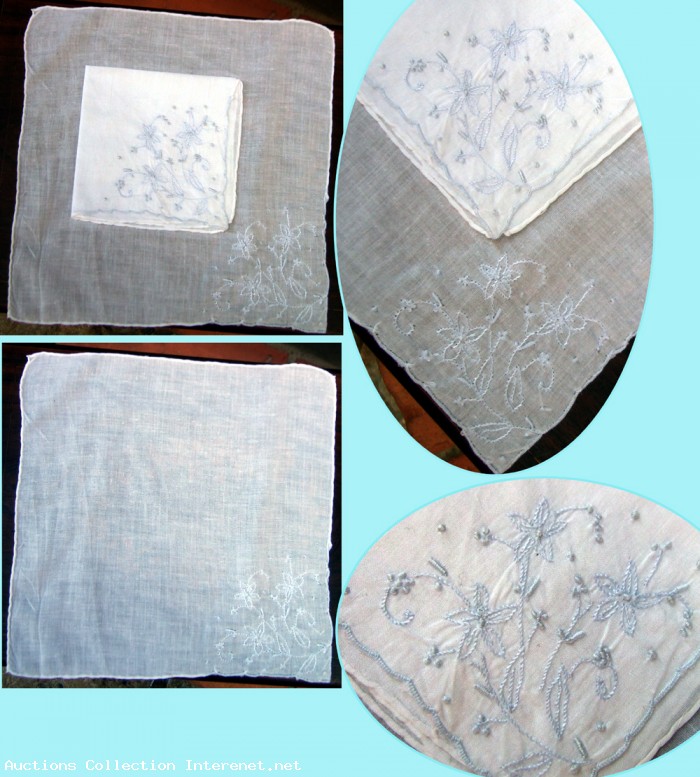 Deux anciens mouchoirs, Brodés main. Motif floral.