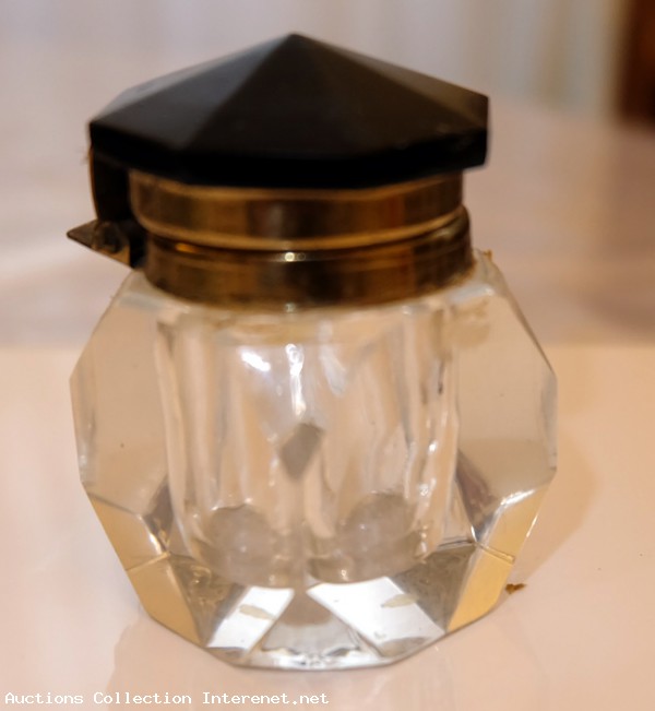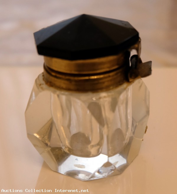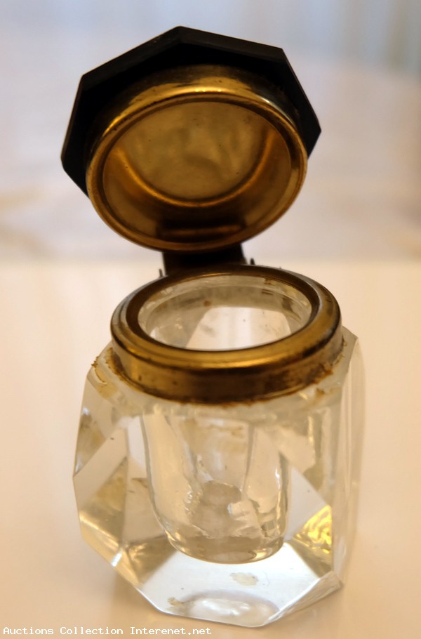Adorable et bel encrier en cristal facetté sertie laiton – époque