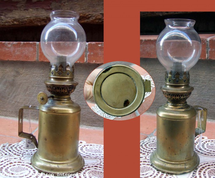 Ancienne Lampe Pigeon à Pétrole. - cuivre - Laiton. Année 1890/1940. Tube boule, présent. Occasion, État légères bosses, rien de méchant.Vendu dans son jus. Dimensions: Diamètre boule de verre 6 cm. Hauteur du pied 22,5 cm. Diamètre du pied au plus ventru, 8 cm. Poids 0,400 Kg. Référence : R150905.