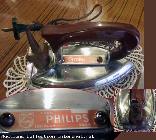 De marque "PHILIPS"Manche de couleur bordeaux en bakélite. Inscription sur le dessus - F255 PHILIPS 125 - 220V - 280W.